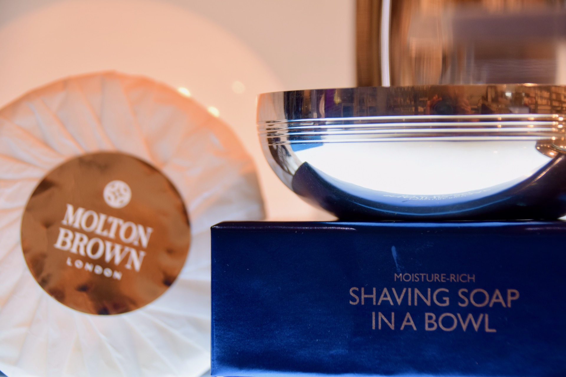 Eine feuchtigkeitsspendende Seife mit Kokosöl in einer glänzenden Rasierschale sorgt für die perfekte Vorbereitung auf eine sanfte Rasur.