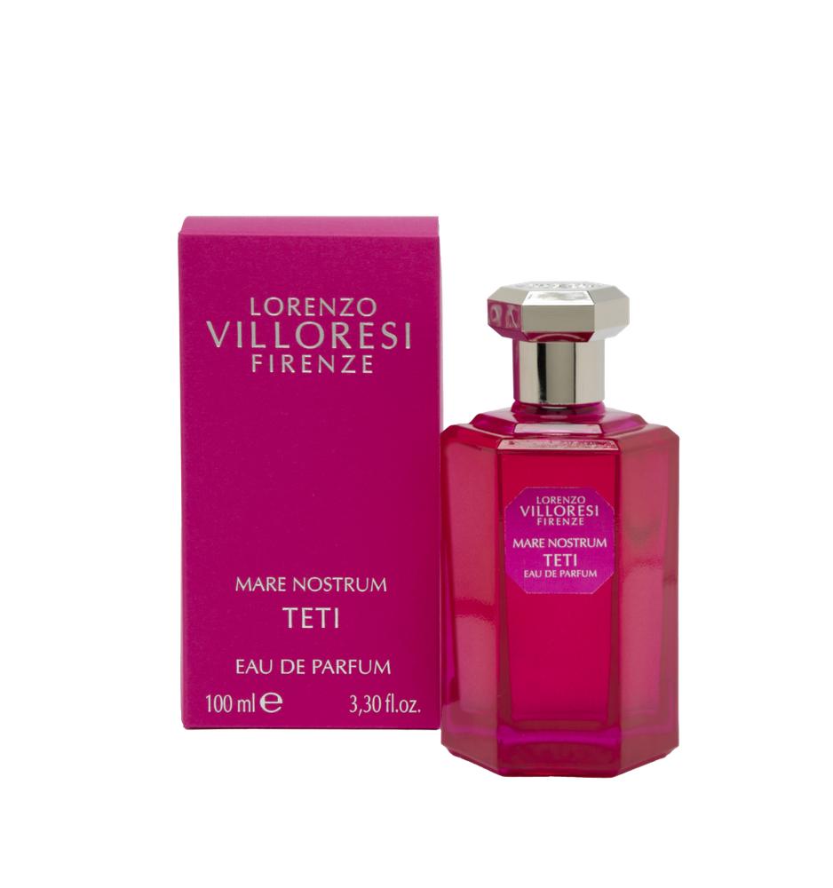 „Teti, Göttin des Meeres und Nymphe der Gewässer, junge Frau von ewiger Schönheit. Sie spielt zwischen den schäumenden Wellen und verzaubert alle, die kommen, um ihren Durst an den Süßwasserquellen zu stillen. Ihr Haar ist mit nie gesehenen Blumen geschmückt, die einen frischen und spritzigen Duft verströmen, während sie in der Morgensonne singt, umgeben von der strahlenden Natur, reich an Früchten in allen Farben.